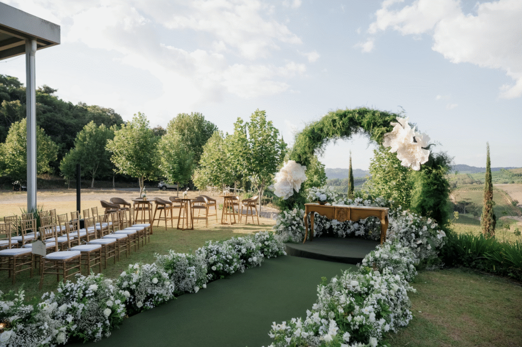 Even if you don’t have a specific date yet, narrowing down a season helps guide venue availability, floral choices, and design direction.
